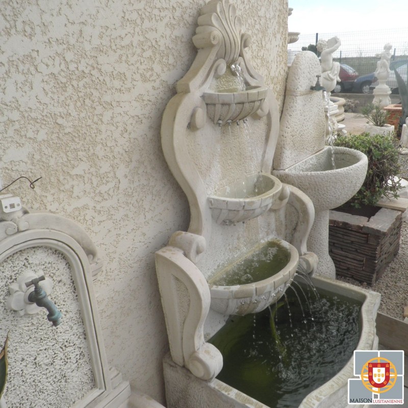 FONTAINE MURALE DE STYLE PROVENCALE AVEC 3 VASQUES EN CASCADE ET 1 BASSIN