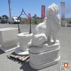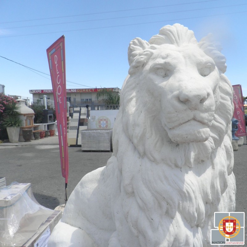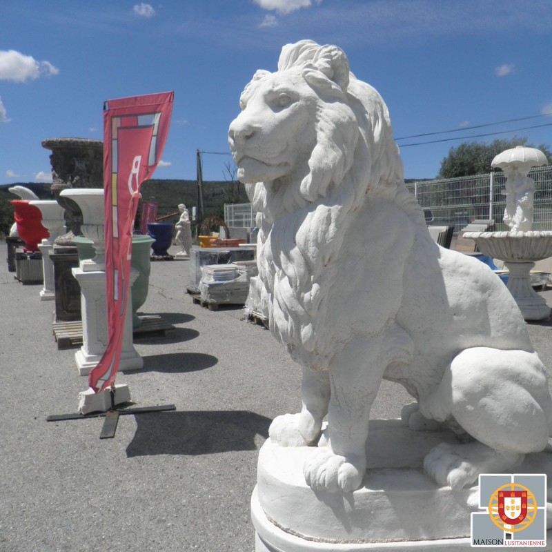 MAJESTUEUX LION BLANC ASSIS SUR UN SOCLE BLANC