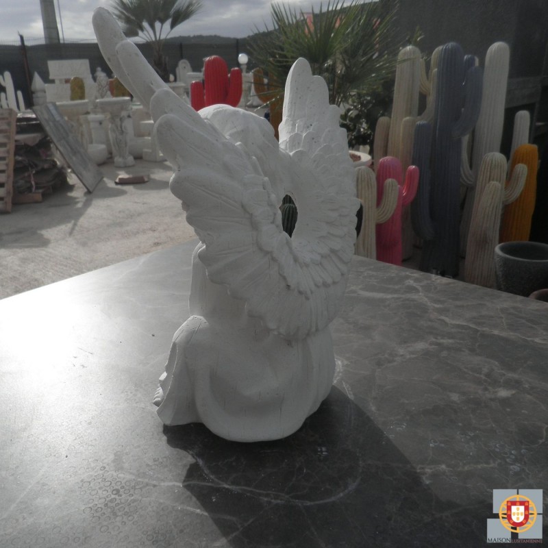 PETIT ANGE BEBE BLANC VIEILLI AVEC SES AILES INT/EXT EN PIERRE RECONSTITUEE